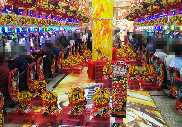4円パチンコにおいて、とくに盛り上がっていたのは「ぱちんこCR真・北斗無双」と「CRスーパー海物語IN沖縄4」。いたるところでプレイヤーが活躍しており、明るいムードが感じられた。