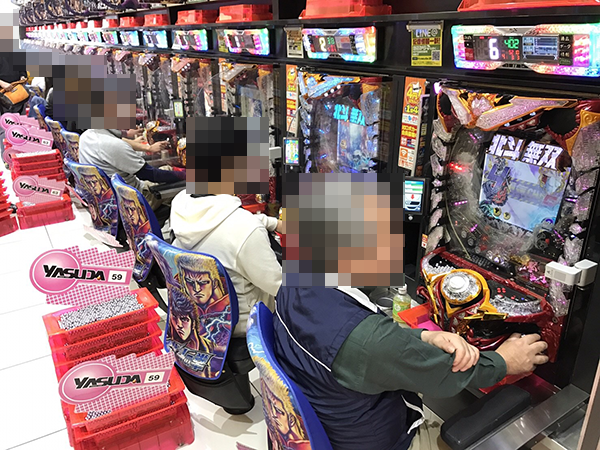17時頃のパチンココーナーでは、「ぱちんこCR真・北斗無双」が稼働と盛り上がりの両方で目立つ存在となっていた。