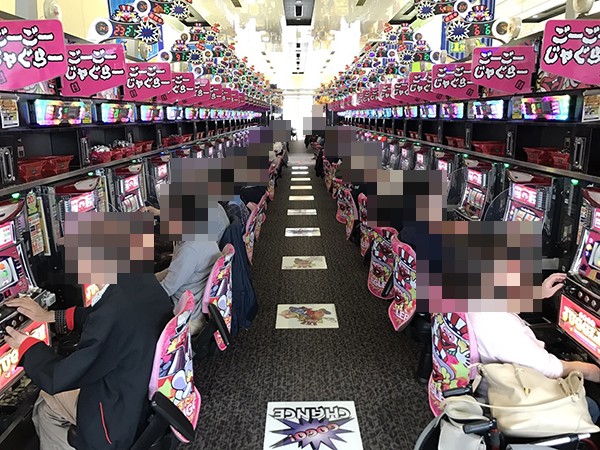 「押忍!番長3」や「沖ドキ!」などにも楽しそうな光景が広がっており、パチスロコーナー全体から明るいムードが感じられた。