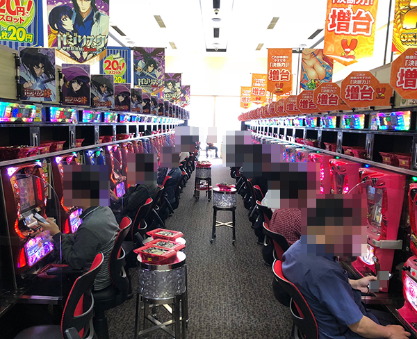 活気のある光景は、「バジリスク~甲賀忍法帖~絆」や「押忍!番長3」、「マイジャグラーⅡ」などでもみられ、機種のスペックを問わずに有意義な時間を過ごせるように思えた。