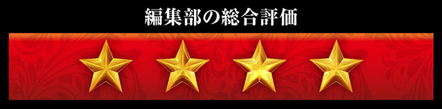 新台をはじめ、パチンコ数機種で好記録を目撃できたが、パチスロコーナーが少し寂しい結果となった。特に設置台数の多い『バジリスク』・『GOD』シリーズの出玉に関しては少し残念な結果に終わったので、次回の新装開店ではユーザー支持率の高い機種への期待を込めて編集部の評価は星4。