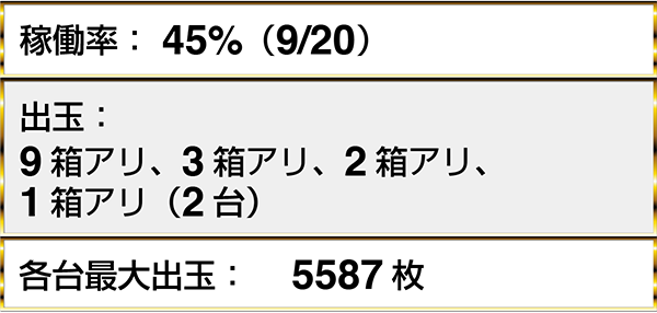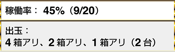 ・『沖ドキ!』は10台以上に1箱を超える出玉アリ