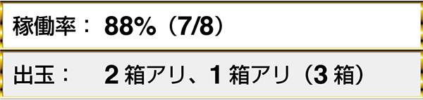 『ミリオンゴッド-神々の凱旋-』の9箱が取材時にもっとも多い獲得出玉であった。