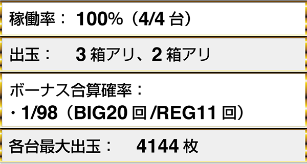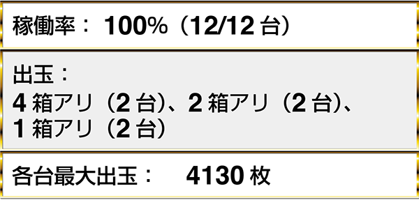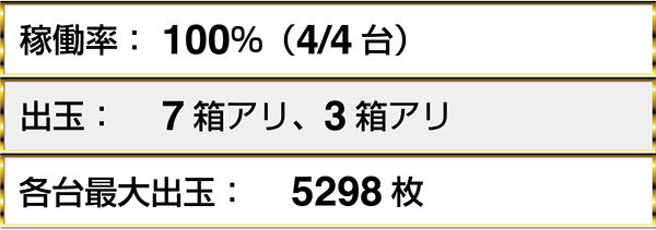 『バジリスク~甲賀忍法帖~Ⅱ』や『パチスロ モンスターハンター 月下雷鳴』など、4機種以上で最大獲得出玉5000枚超を確認している。