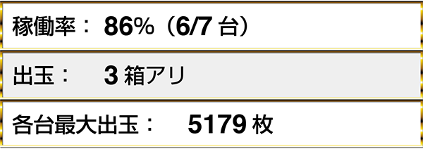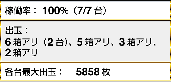 ・『ミリオンゴッド-神々の凱旋-』では7名中5名が持ち玉遊技。6箱が2名