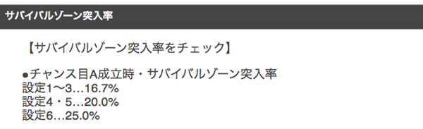 チャンス目Aからのサバイバルゾーン突入率は高設定ほど高い。