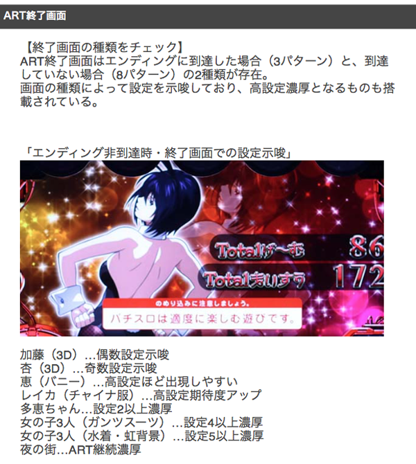女の子3人など、ART終了画面における高設定濃厚パターンも把握しておこう。