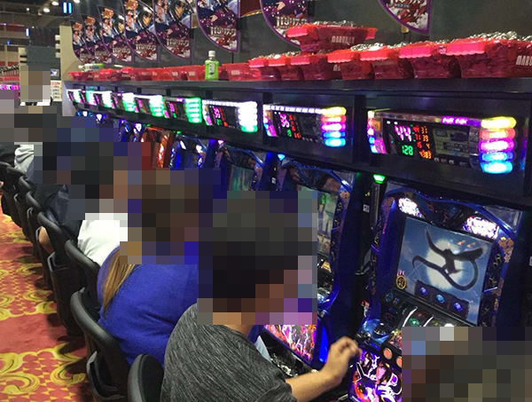 キレイな柄のカーペットや明るいライトで鮮やかに彩られている「マルハン相模原店」に大勢のプレイヤーが来店。