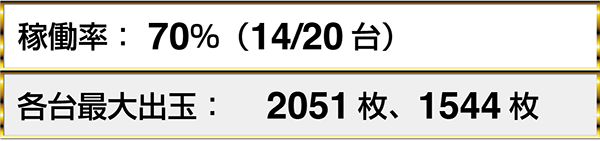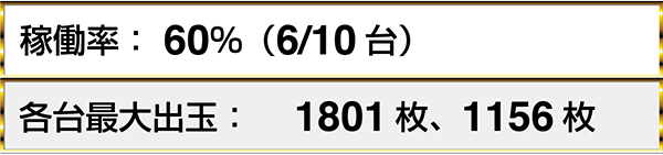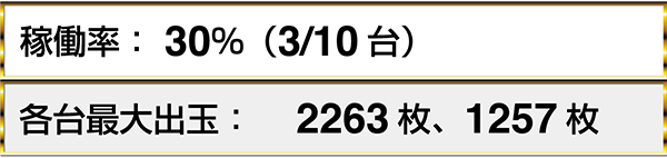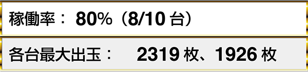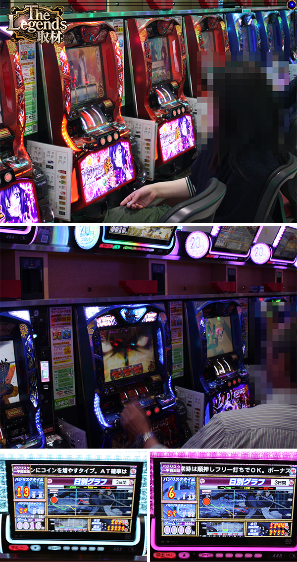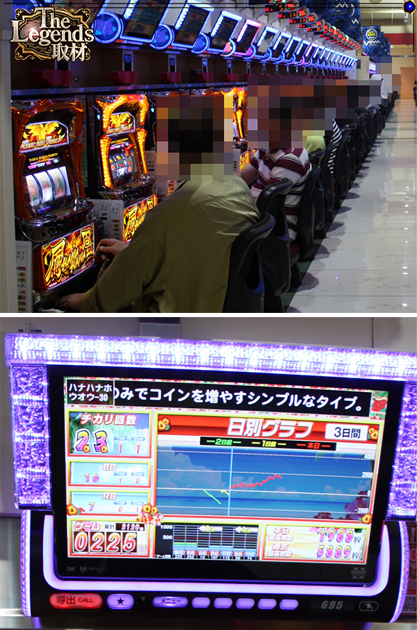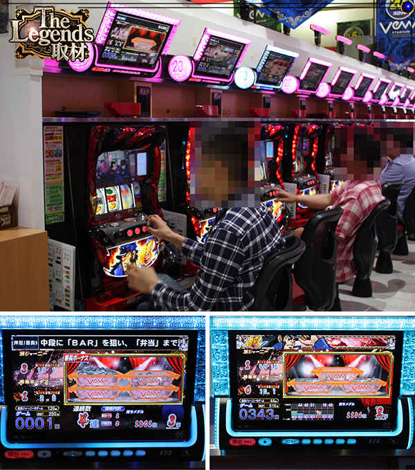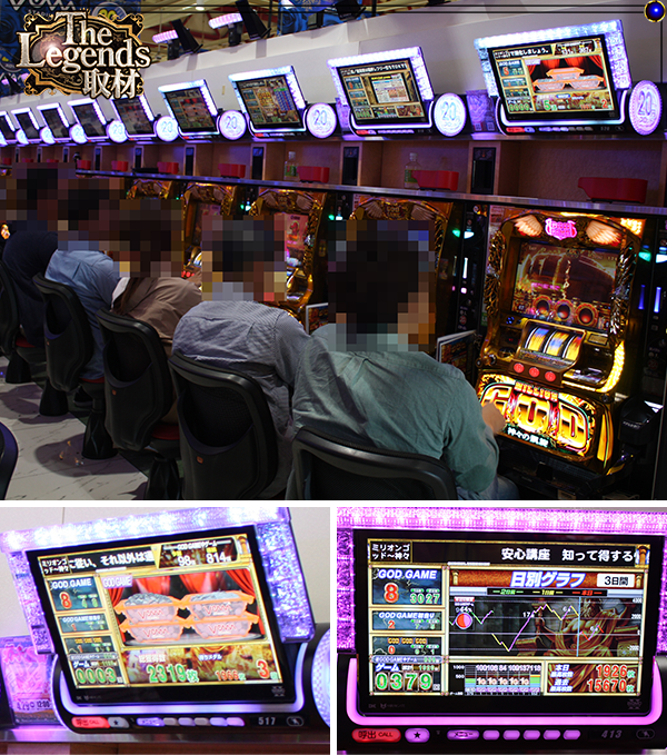『ミリオンゴッド-神々の凱旋-』や『バジリスク~甲賀忍法帖~絆』の稼働率が高く、取材中はつねに70%以上の席が埋まっていた。
