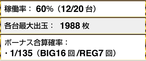 ・『ハナハナ鳳凰-30』にボーナス合算1/130以下のデータを確認