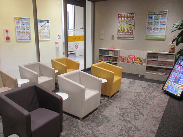 ホール内には、扉で仕切られたレストスペースを完備。漫画や雑誌が豊富に取り揃えられているうえに、禁煙となっているため、多くのプレイヤーがくつろげることだろう。