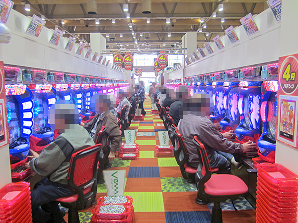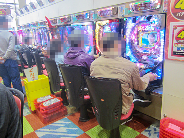 14時過ぎの4円パチンコでは、「CR大海物語4」や「CRぱちんこ GANTZ」が活況。機種の魅力を存分に味わうプレイヤーを確認している。