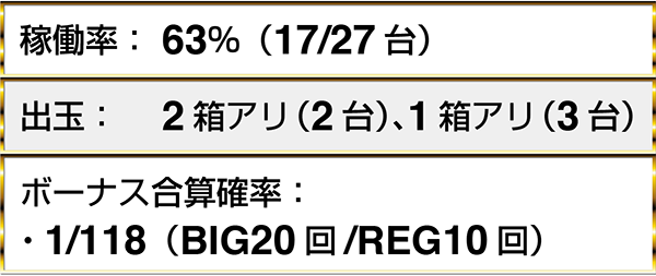 また、この日は新台入替の初日で、新機種が15時から開放されていた。