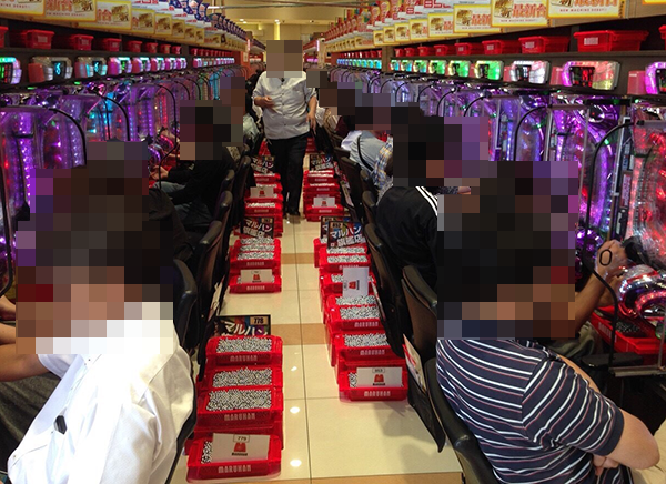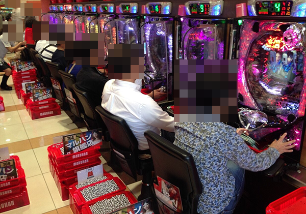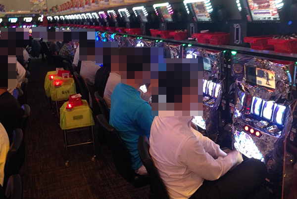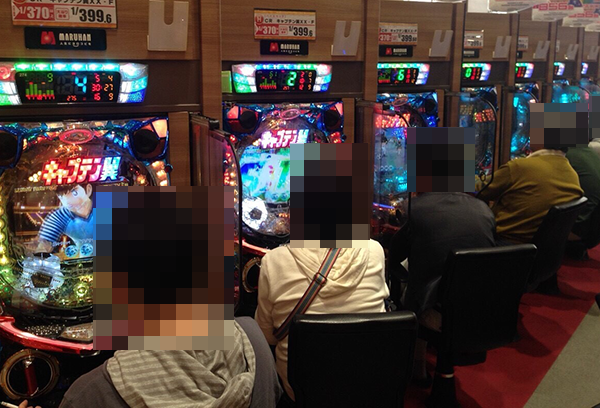 午後になるとプレイヤーの人数はさらに増え、4円パチンコの「CRヱヴァンゲリヲン10」や、「CR義風堂々!!〜兼続と慶次〜」、「CR着信アリ」などはほぼ満席となっていた。