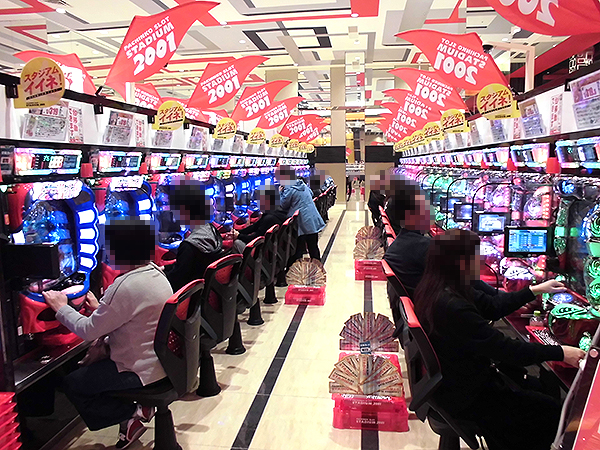 ほかにも、「ぱちんこCR蒼天の拳 天羅」や「CRフィーバー戦姫絶唱シンフォギア」などが活況。シマ全体が明るい雰囲気に包まれていた。