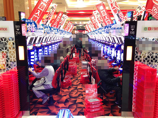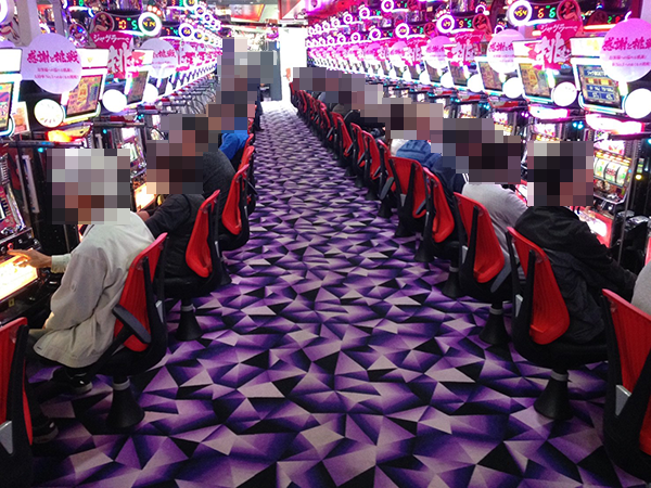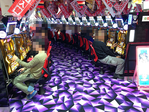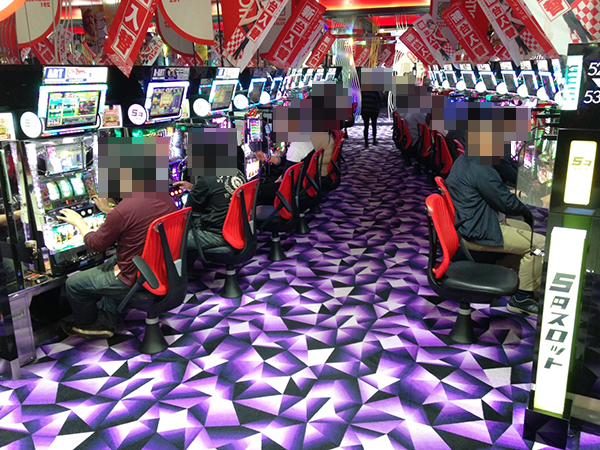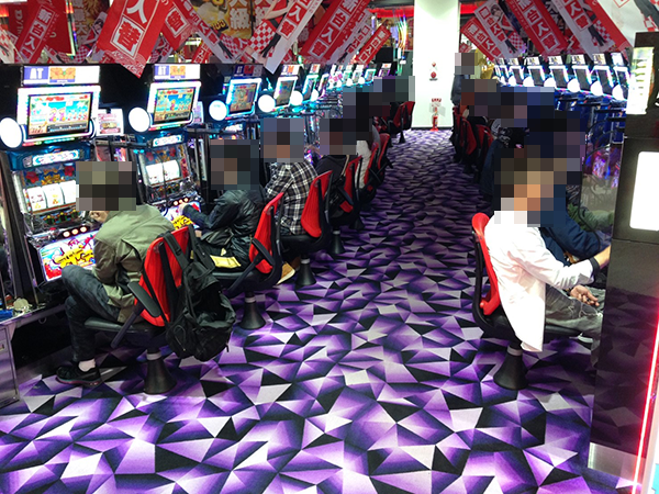 前日に引き続いて「CR大海物語4」が盛況となっており、シマ全体に華やかな光景が広がっていた。