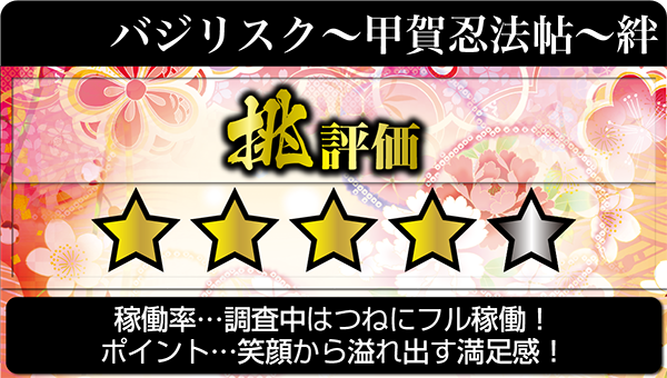 フル稼働となっていた「バジリスク~甲賀忍法帖~絆」のボルテージも高い!! 思わず目を奪われるほどに魅力的な光景がシマ全体に広がっていた。