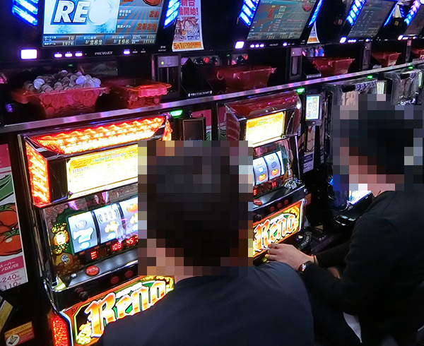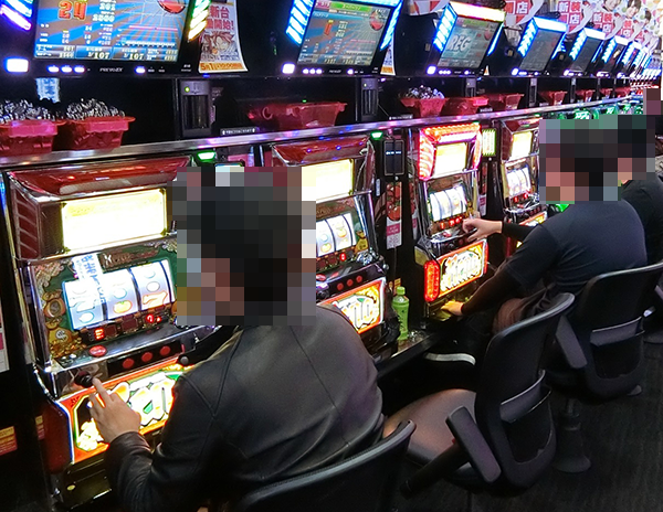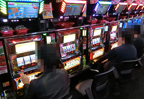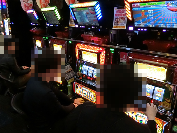 ホール内を進んでいくと、多くの機種に活躍をするプレイヤーの姿があった。