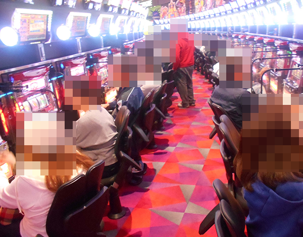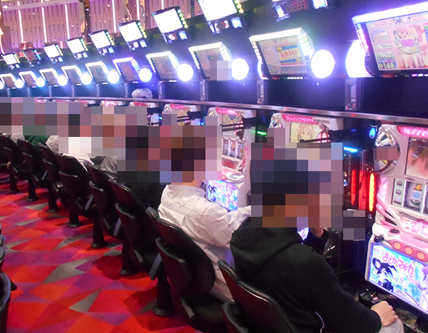低貸し玉コーナーの支持も厚く、1000円/190枚パチスロと100円/93玉パチンコがともにほぼ満席。