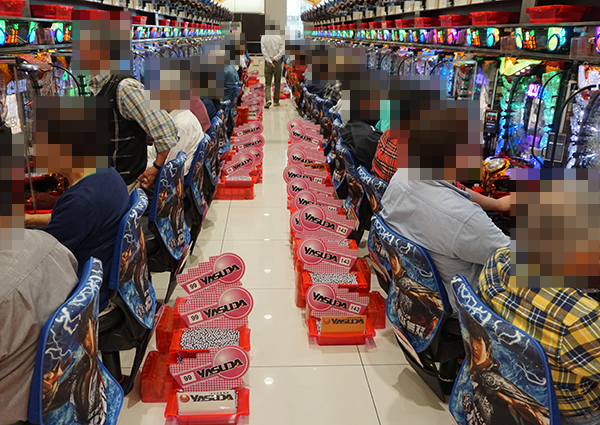 午後の4円パチンコでは、「CRスーパー海物語IN沖縄4」や「CR大海物語4」をはじめとした海物語シリーズが大盛況。2日間を通して、シマ全体が明るいムードに包まれていた。