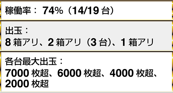 『ミリオンゴッド-神々の凱旋-』において、6000枚を超える最大獲得出玉も確認している。