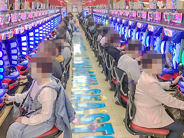 開店直後の様子を見てみると、20円パチスロの「バジリスク~甲賀忍法帖~絆」のほか、4円パチンコの「CR大海物語4」の支持が厚く、瞬く間に満席となっていた。