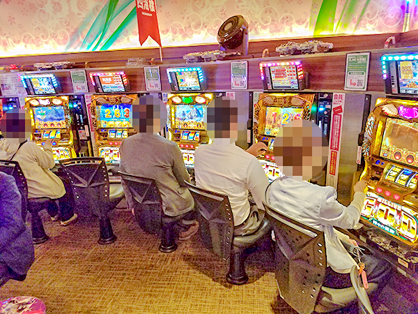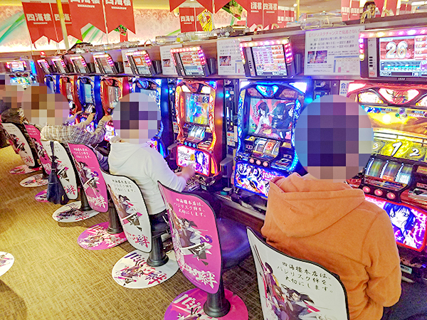 開店直後は20円パチスロが人気に。特に「バジリスク~甲賀忍法帖~絆」が支持を集めていた。
