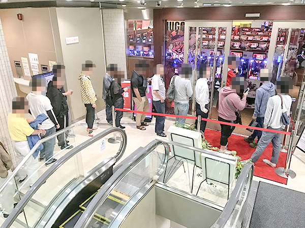 開店前には70人以上のプレイヤーが集合。遊技を心待ちにしている様子が数多く見受けられた。