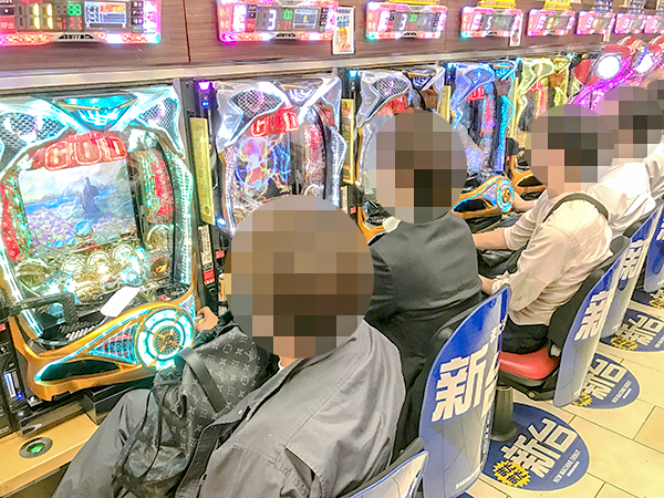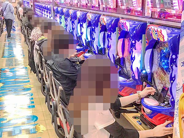 19時ごろの4円パチンコを見てみると、朝から人気の「CR大海物語4」のほか、「CR ミリオンゴッド ディセント」などでプレイヤーが大活躍。遊技中に見せた嬉しそうな表情が印象に残っている。