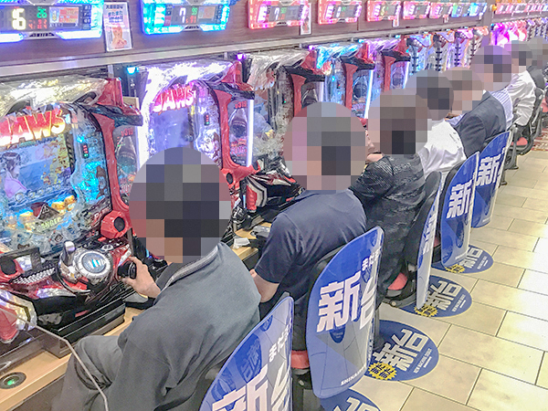 開店直後は4円パチンコの「CR大海物語4」や、20円パチスロの「バジリスク~甲賀忍法帖~絆」を中心にプレイヤーが集まっていた。