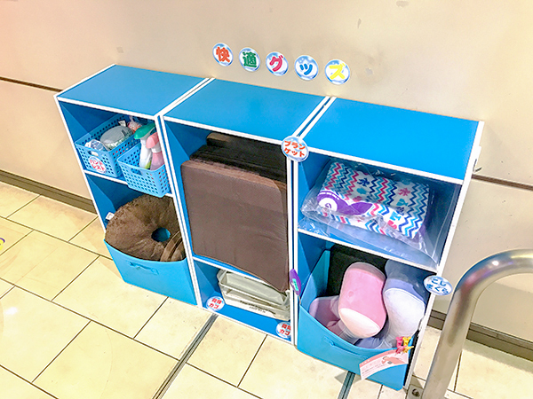 同店はブランケットや消臭スプレーなど、アメニティグッズが充実。プレイヤーたちが気持ちよく遊技を楽しめる環境が整っている。