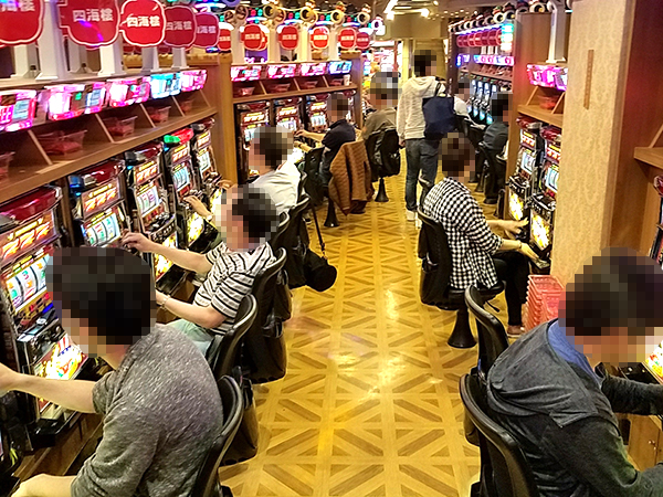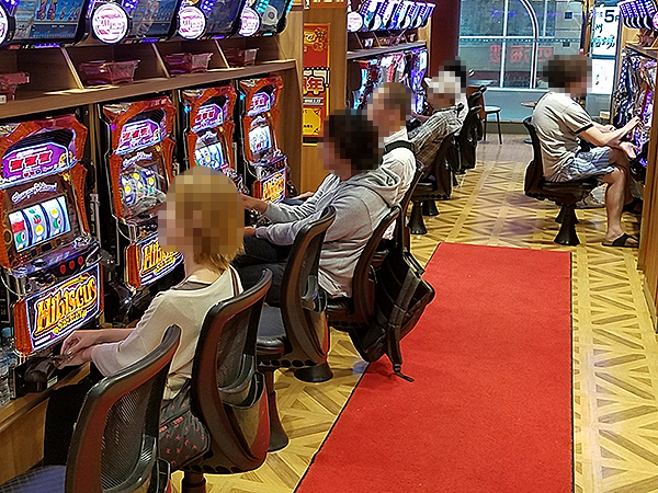 朝イチの店内を見ると、ジャグラーシリーズが満席状態に。同機種に対する人気の高さがうかがえた。