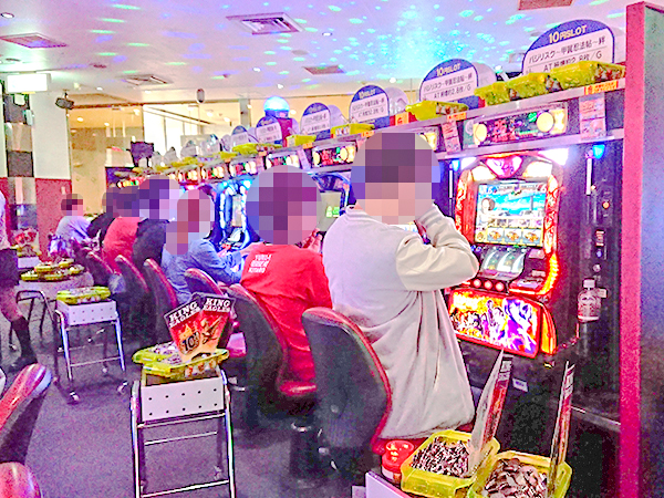 取材時の店内には既に多くのプレイヤーが集結し、パチンコ・パチスロを問わずにぎやかな状況となっていた。