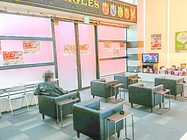 レストスペースは広々として居心地がよく、取材時にもテレビを見ながらゆっくりリフレッシュするプレイヤーが見られた。