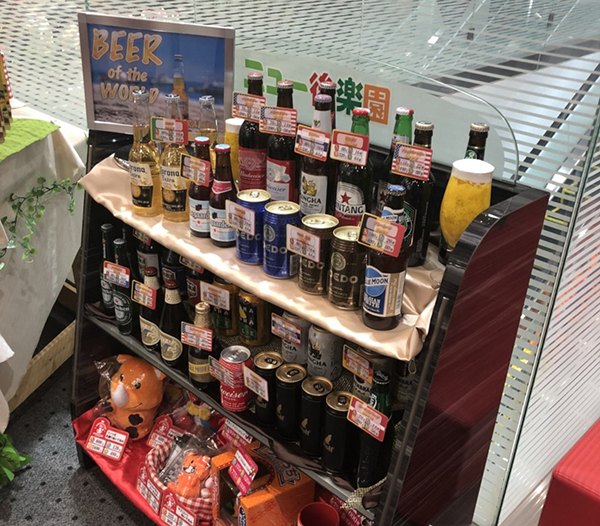 賞品コーナーに用意されているこだわりのラインナップもオススメ! 取材時は世界各国のビールが並んでおり、みているだけでヨダレが出てくるほどに魅力的であった。