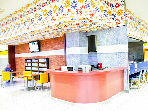レストスペースには食事処が併設されており、手軽に食事がとれる便利な環境が整っている。