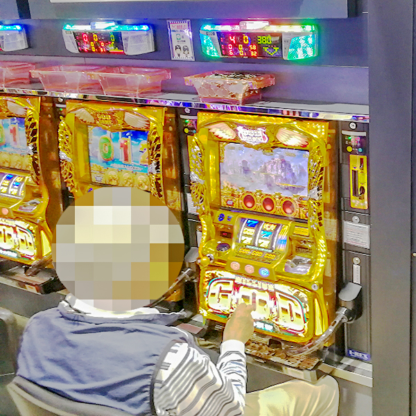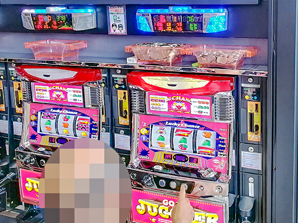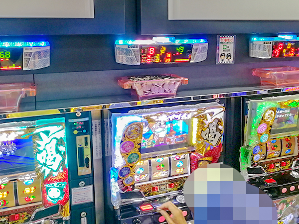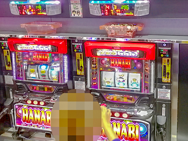 20円パチスロを見渡すと、「ゴーゴージャグラー」や「ハナビ マットブラックver.」などのボーナスタイプが好評。プレイヤーの見事なパフォーマンスが目立ち、シマ全体が活気づいていた。