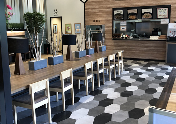 清潔感があるホール内には、禁煙のレストスペースや食事処を完備。
