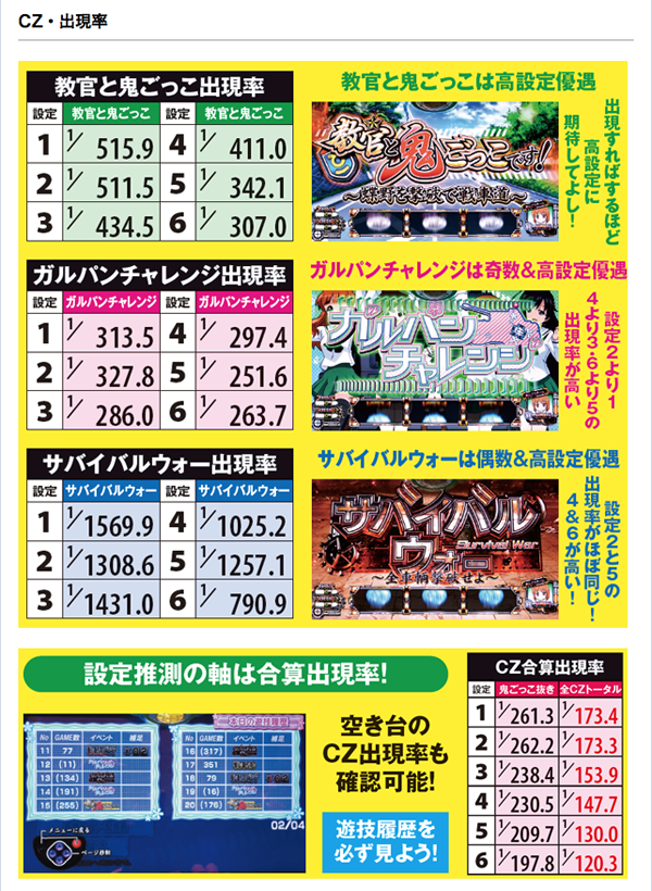 3種類あるCZの合算確率を軸に設定を推測しよう。