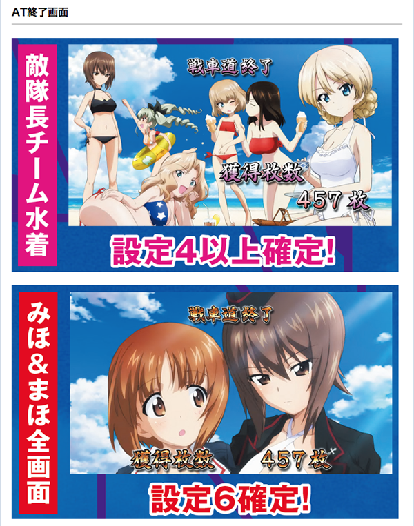 AT終了画面においては、みほ&まほ全画面ならば設定6が濃厚となる。
