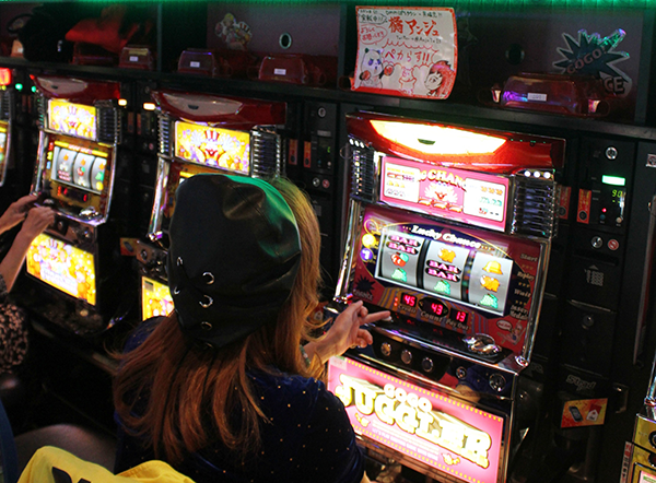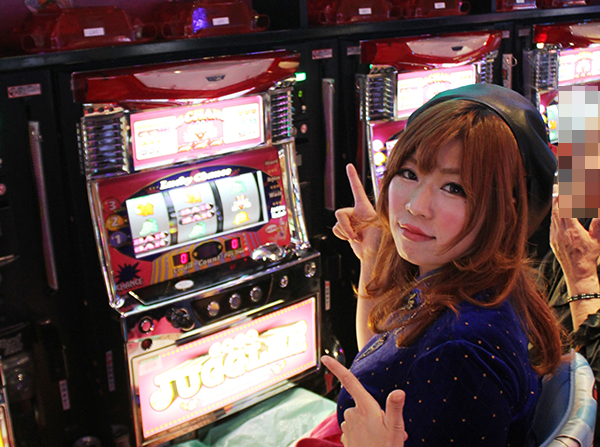 にぎわうホール内で、アンジュちゃんは「ゴーゴージャグラー」をチョイスしました~。