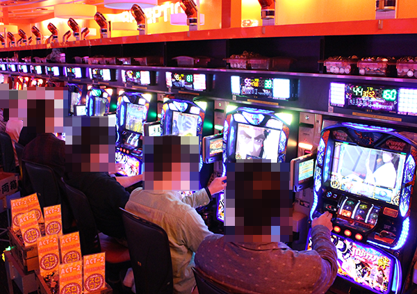 ホール内は遊技を楽しむプレイヤーたちで活気づいており、いくつもの場所に華やかな光景が広がっていた。