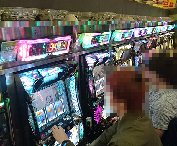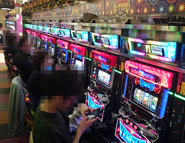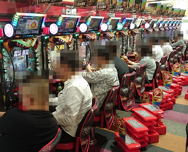 100円/24玉パチンコにおいて、もっとも活気づいていたのは「ぱちんこCR真・北斗無双」。満面の笑みを浮かべながら遊技をおこなう姿も多く、シマ全体に魅力的な光景が広がっていた。