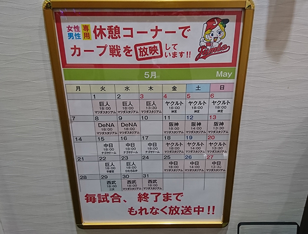 野球のスコアボードや試合の予定が書かれたカレンダーが掲示されていることからも、応援しているチームへの愛情が伝わってきた。