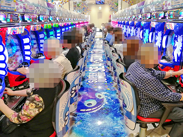 14時ごろの4円パチンコでは、「CR大海物語4」や「CRスーパー海物語IN JAPAN 319バージョン」などの海物語シリーズが盛況で、機種性能を堪能するプレイヤーの嬉しそうな姿を目にしている。