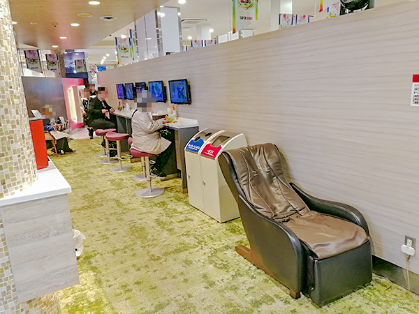 レストスペースにはテレビやマッサージチェアを用意しているだけでなく、カフェも併設。誰もが有意義な時間を過ごせることだろう。