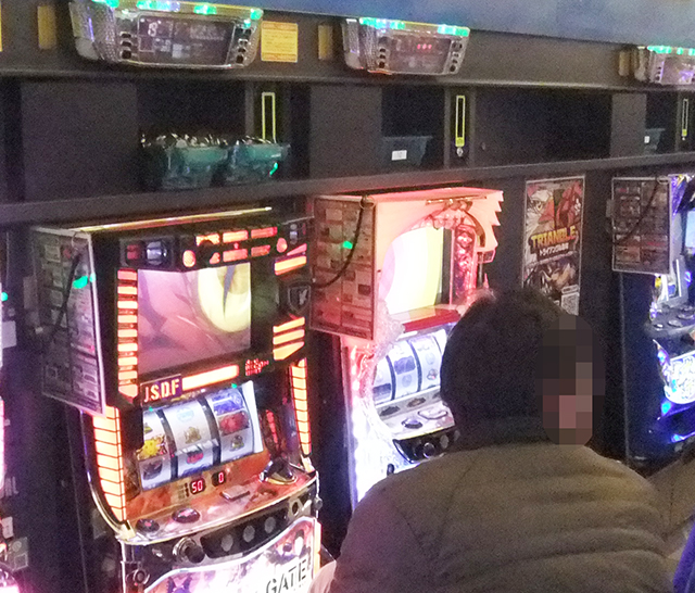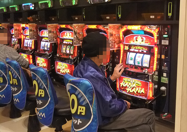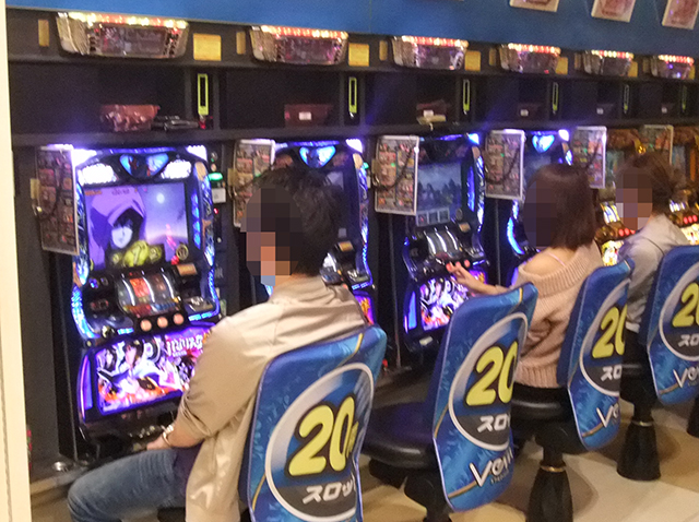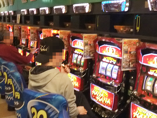 男性スロッターが着席しているのが分かる。