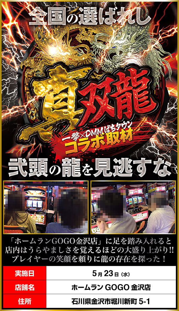 龍の存在を探るべく、「真双龍」をおこなった場所は「ホームランGOGO金沢店」。