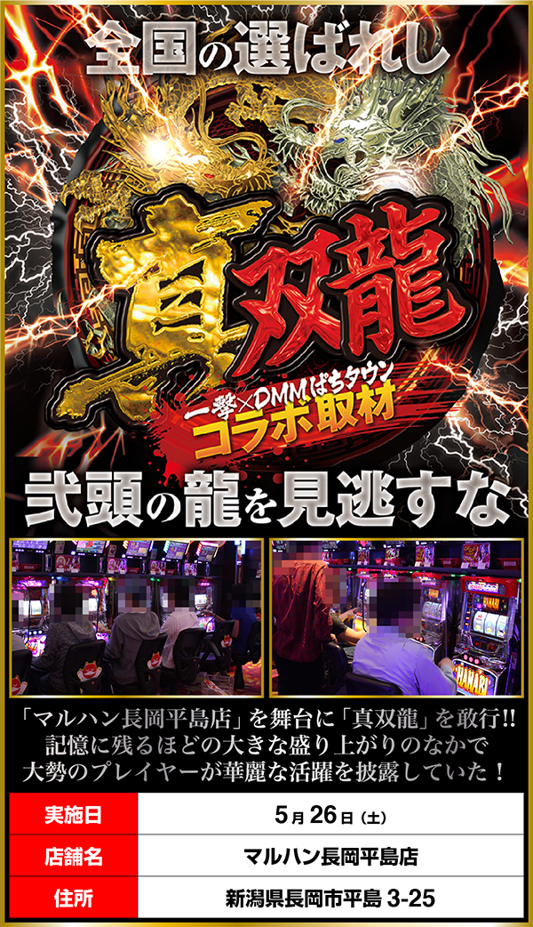 大型の駐車場が完備されている「マルハン長岡平島店」が「真双龍」の舞台となった。