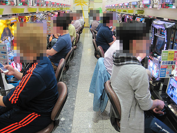 5円の1レートのみのパチスロコーナーでは、「沖ドキ!‐30 」や「ハナハナ鳳凰‐30 」といった沖スロコーナーの盛り上がりが大きい。特に、中高年層の男性プレイヤーから圧倒的な支持を受けており、周囲の注目を集めるほどのパフォーマンスを披露するプレイヤーも存在していた。